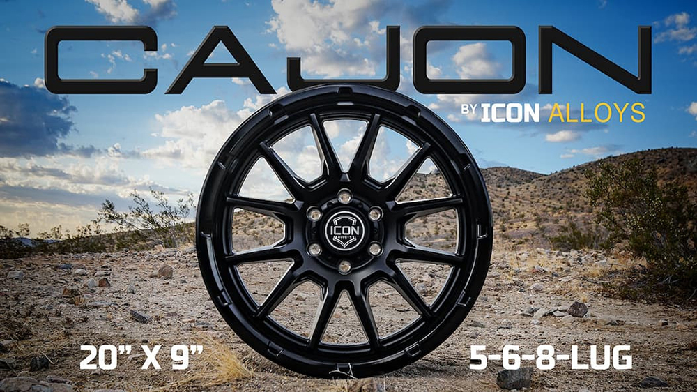 Bring a sharp new look to your ride with the ICON Alloys Cajon, a stylish multi-spoke 20” wheel that will set your vehicle apart from the rest. Available in multiple finishes like stealthy Double Black, slick Satin Bronze with Gloss Black Lip, and an eye-catching Silver Machined with Gloss Black Lip; these wheels will increase both the form and function of your Jeep, truck, or SUV.