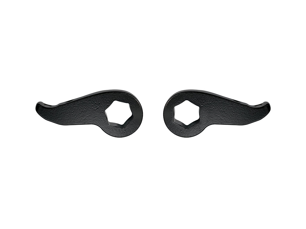 Designed specifically for 2020–2026 Chevrolet Silverado and GMC Sierra 2500/3500 HD trucks, these high-strength torsion keys provide a simple and effective way to level your stance and unlock additional front-end ride height without compromising durability. These keys deliver 2–3.5 inches of adjustable front lift over stock on most models, allowing you to eliminate factory rake, improve tire clearance, and dial in the aggressive look your heavy-duty truck deserves. Whether you’re just stepping up to larger wheels and tires or building a more capable off-road setup, these torsion keys provide the adjustability needed to fine-tune ride height to your application. Constructed from forged steel, these keys are built to handle the demands of work, towing, and off-road use. The forging process enhances structural integrity and strength compared to cast alternatives, ensuring long-term reliability under load. A durable semi-gloss black powder coat finish provides corrosion resistance while delivering a clean, OE-inspired appearance that blends seamlessly with factory components. Engineered for strength, precision, and lasting performance, this torsion key set is backed by the ICON Limited Lifetime Warranty, giving you confidence both on and off the pavement.